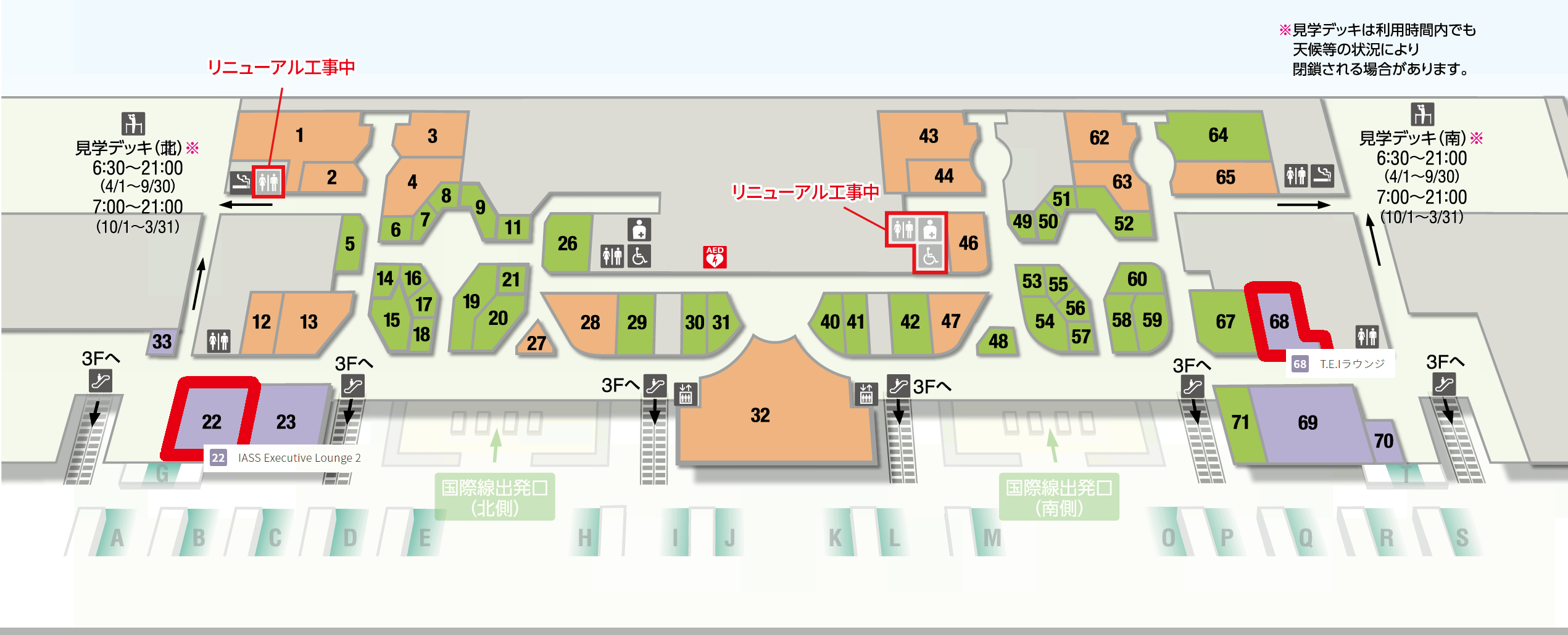 は、出国エリア(制限エリア)にあるので覗けません…
